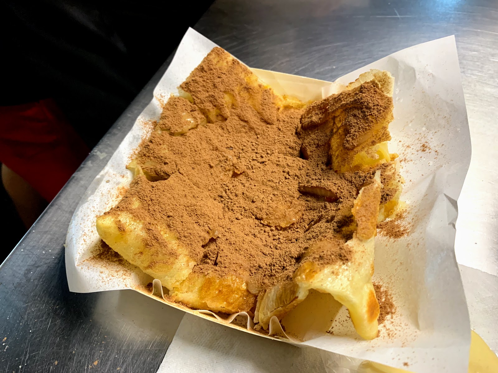 切小塊後會淋上煉乳跟美祿粉,