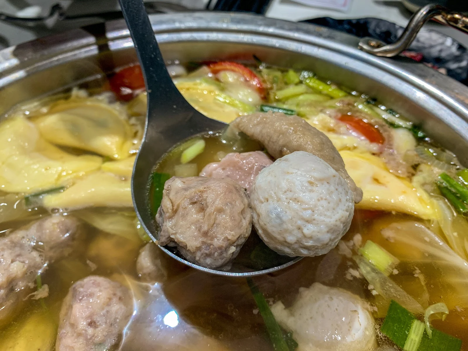 內有蛋餃、三角肉餃、福州丸、牛肉丸、蝦丸。